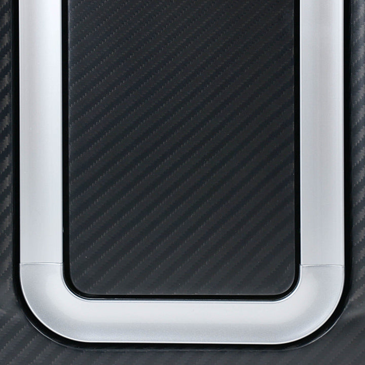 Tecknomonster Storiko Big Cabin Trolley, 2 wheels in Glacies Carbon fiber autoclaved monocoque, with zippered closure. Very resistant wheel supports in aluminum, 360° pivoting, ultra silent. Telescopic handle 3 stages. Super lightweight, strong, and the original Curv technology Trolley. Aeronautical carbon fiber suitcase Made in Italy.