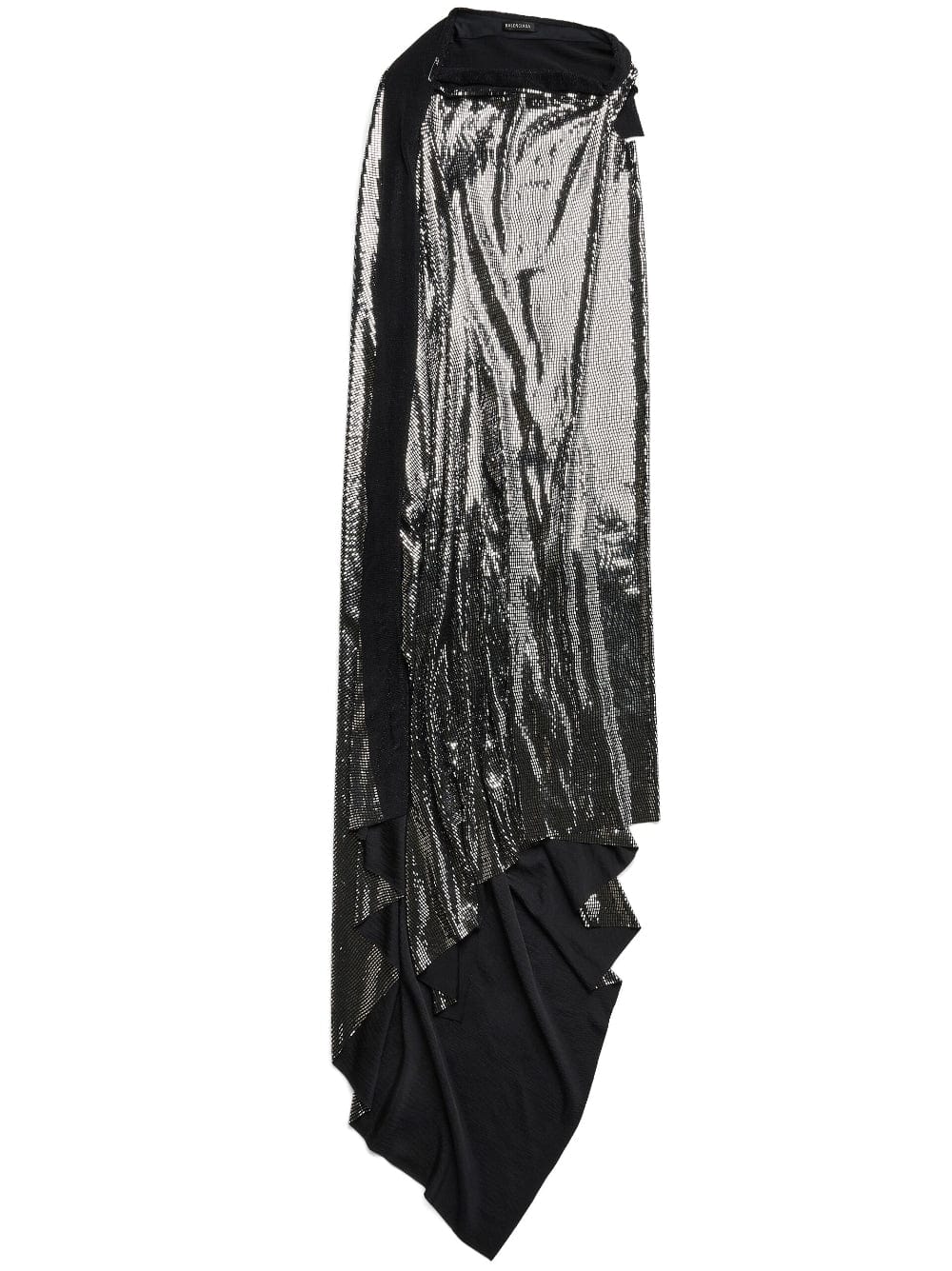 Minimal metallic-effect gown from BALENCIAGA featuring black, silver-tone, metallic effect, draped back, boat neck, safety pin detail, sleeveless, raw edge, asymmetric hem and floor-length. We've partnered with Good On You — an independent agency that rates how brands perform in relation to their impact on the planet, people and animals, with a multi-criteria rating simplified to a five points scale. In order to be awarded our conscious label, larger brands need to score a minimum of four out of five ('Good'), while smaller brands must score at least three out of five ('It's a start'). This item comes from a brand rated four out of five ('Good') by Good on You. Please note, this is a brand-level rating and does not guarantee that this product is made with conscious materials.. Learn more about what makes a product Conscious on our Conscious Criteria page.