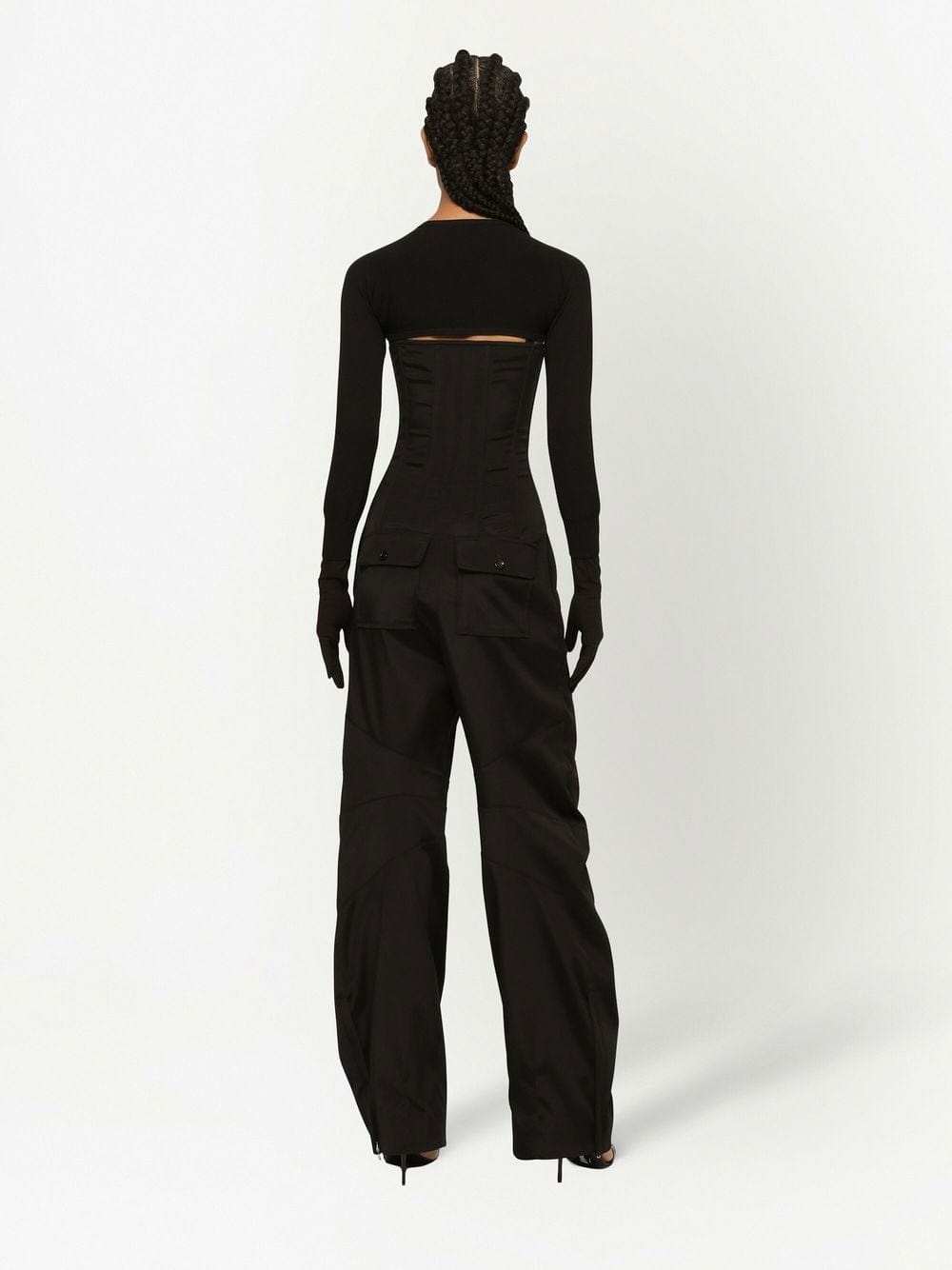 KIM DOLCE&GABBANA cropped button-fastening cardigan from DOLCE & GABBANA featuring black, stretch-design, round neck, button fastening and long sleeves.
